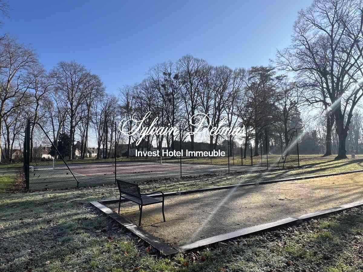 Le tout se dresse au milieu d’un parc arboré avec des arbres centenaires, deux piscines, un tennis, une pièce d'eau.